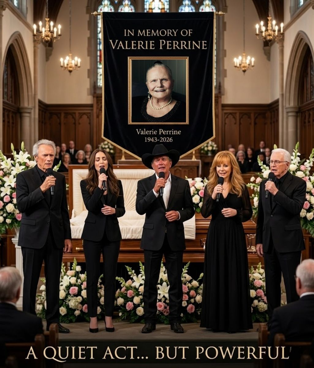 Among those seated quietly in the room was George Strait, a figure known for his steady presence and understated grace. He had not drawn attention to himself throughout the service. Like many others, he appeared to be there simply to listen, to remember, and to honor Valerie Perrine in silence.